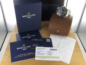 Original Breitling Superocean Ref. A17366 aus dem Jahr 2020 mit Verkaufsdatum 28.09.2020. Die Uhr hat einen Durchmesser von 42 mm. An der Uhr befindet sich ein massives Stahlband. Das Chronometer Automatikwerk Breitling 17 ist kontrolliert und läuft einwandfrei. Gehäuse und Band weisen nahezu keine Gebrauchsspuren auf, die Uhr kann als neuwertig bezeichnet werden. Die Lieferung erfolgt mit Originalzertifikat, Chonometer Zertifikat, Anleitung Box mit Umkarton, Beschreibung und Rechnung von Classic Watches sowie CW-Garantiezertifikat.