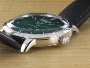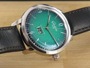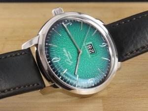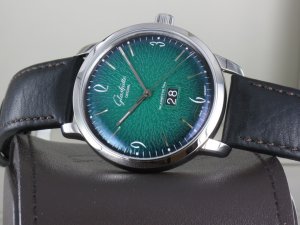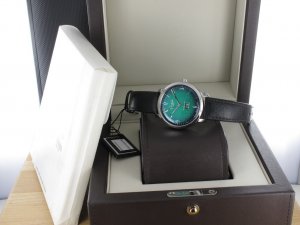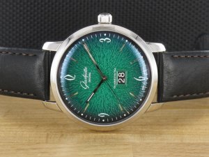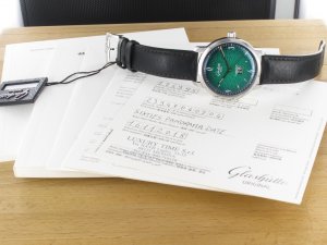 Glashütte Original Original Sixties Panorama Date ref. 2-39-47-04-02-04 mit grünem Zifferblatt, Verkaufsdatum 16.11.2018. Das Gehäuse weist keine Gebrauchsspuren auf. Die Uhr könnte als neuwertig bezeichnet werden. Das Uhrwerk ist kontrolliert und läuft einwandfrei. Zum Lieferumfang gehört die Box , Bedienungsanleitung und Garantiekarte, Rechnung von Classic Watches sowie CW Garantiezertifikat.