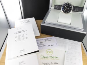 IWC Fliegerchronograph Ref. IW377701 aus 2015 mit Erstverkauf 06.05.2015 mit schwarzem Zifferblatt Die Uhr ist ein zwei mal getragen aber absolut neuwertig! Das Uhrwerk ist kontrolliert und läuft einwandfrei. Zum Lieferumfang gehört die Box , Bedienungsanleitung und Garantiekarte sowie Rechnung von Classic Watches. Die Uhr hat noch bis 05 - 2017 Werksgarantie von IWC.