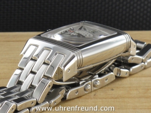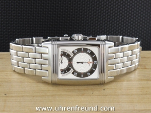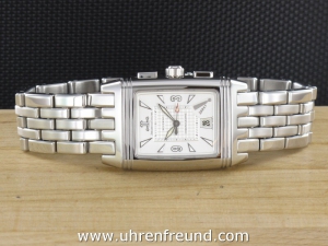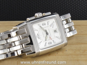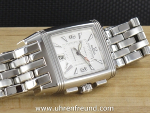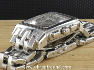 Original JaegerLeCoultre Gran' Sport aus 2005 mit Chronograph und Datum. Die Das Gehäuse und Band weist nahezu keine Tragespuren. Das Gehäuse hat die Mase 43,5 x 28,3mm ohne Krone. Das Manufakturkaliber 859 ist kontrolliert und läuft einwandfrei. Die Uhr wird geliefert mit original Box und Umkarton, Papieren, Rechnung von Classic Watches sowie CW - Garantiezertifikat. Listenpreis 8500,- Euro