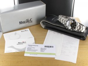 MarcelloC Nettuno 3 Ref. 2007.2 aus aus dem Jahr 2008 mit Verkaufsdatum 24.11.2008. Die Uhr hat einen Durchmesser von 40 mm. Das Gehäuse und Band weisen nahezu keine Gebrauchsspuren auf. Die Uhr könnte als neuwertig bezeichnet werden. Das Automatik Uhrwerk ist komplett überholt, kontrolliert und läuft einwandfrei.einwandfrei. Die Lieferung erfolg mit Box, Papieren und Rechnung von Classic Watches sowie CW - Garantiezertifikat.