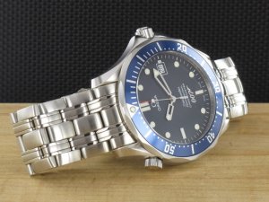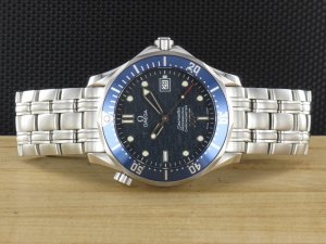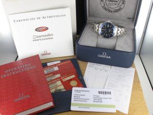 Original Omega Seamaster Diver Professional Limited Edition 40 Jahre James Bond 007 Ref. 25378000 aus dem Jahr 2002 mit blauem 007 Zifferblatt. An der Uhr befindet sich ein Stahlband mit Faltschliesse und Taucherverlängerung. Das Automatikkaliber Omega 1120 ist kontrolliert und läuft einwandfrei. Das Gehäuse und Band weisen keinerlei Gebrauchsspuren auf. Die Uhr wurde nie getragen und hat noch die original Aufkleber auf Schließe und Gehäuseboden. Die Lieferung erfolgt mit original Garantiekarten, Box mit Umkarton, Beschreibung und Rechnung von Classic Watches sowie CW - Garantiezertifikat.
