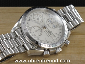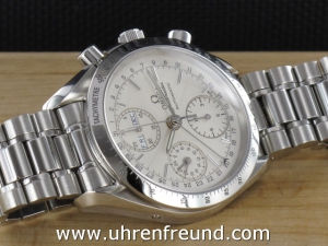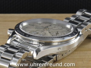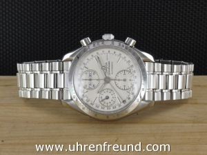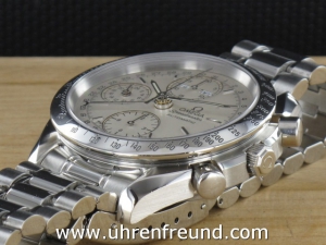 Original Omega Speedmaster Day Date Chronograph Automatik Ref. 175.0044 aus 1998. Die Uhr befindet sich im Originalzustand und weist geringe Gebrauchspuren auf. Die Uhr hat einen Durchmesser von 37mm. Die Uhr hat das Automatik Uhrwerk Kaliber 1151. Das Uhrwerk ist überholt, kontrolliert und läuft einwandfrei. An der Uhr befindet sich ein Omega Stahlband mit Faltschließe. Die Lieferung erfolgt mit Box und Umkarton, Unbedenklichkeitsbescheinigung, Rechnung von Classic Watches und CW Garantiezertifikat.