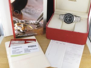 Original Omega Speedmaster Professional Ref. 3539.5000 mit Saphirglas aus dem Jahr 2009. Die Uhr befindet sich im Originalzustand. Das Gehäuse und Band sind in einem sehr guten Zustand und weisen nahezu keine Tragespuren auf. Die Uhr hat einen Durchmesser von 38,5 mm. Die Uhr hat das Omega Automatik Kaliber 3220. Das Uhrwerk wurde komplett überholt, kontrolliert und läuft einwandfrei. An der Uhr befindet sich ein Omega Stahlband mit Faltschließe. Die Lieferung erfolgt mit Original Box mit Umkarton, Papieren, CW-Garantiekarte und Rechnung von Classic Watches.