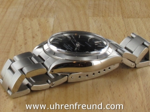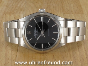 Original Rolex Air-King Ref. 5500 mit schwarzem Zifferblatt (neu) aus dem Jahr 1981. Das Gehäuse, Band und Plexiglas (neu) befinden sich in sehr gutem Zustand und weisen nur sehr geringe Gebrauchsspuren auf. Das Automatik Uhrwerk ist überholt kontrolliert und läuft einwandfrei. Bei der Uhr handelt es sich um die Herrengrösse mit einem Durchmesser von 33 mm, welche auch gerne von Damen getragen wird. Die Lieferung erfolgt mit, Unbedenklichkeitsbescheinigung, Rechnung von Classic Watches und CW-Garantiezertifikat. Eine sehr schöner Klassiker, der den Liebhaber der älteren Rolex Modelle begeistern wird.