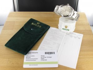 Original Rolex Air-King Ref. 5500 mit einem Zifferblatt in silber aus dem Jahr I 1970. Die Uhr befindet sich im Orginalzustand. Das Gehäuse, Plexiglas und Band befinden sich in sehr gutem Zustand und weisen nur geringe Gebrauchsspuren auf. Das Automatik Uhrwerk ist überholt, kontrolliert und läuft einwandfrei. Bei der Uhr handelt es sich um die Herrengrösse mit einem Durchmesser von 34 mm, welche auch gerne von Damen getragen wird. Die Lieferung erfolgt mit Serviceetui, Rechnung von Classic Watches und CW Garantiezertifikat.