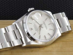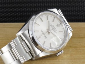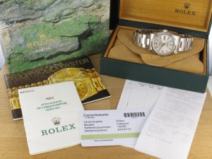 Rolex Datejust 36mm ref. 16200 mit silbernem Zifferblatt aus 1999 mit Verkaufsdatum 15.12.1999. Die Uhr befindet sich im Orginalzustand. Das Gehäuse, Saphirglas und Oysterband befinden sich in sehr gutem Zustand und weisen keine Gebrauchsspuren auf. Das Automatik Uhrwerk ist überholt, kontrolliert und läuft einwandfrei. Bei der Uhr handelt es sich um die Herrengrösse mit einem Durchmesser von 36 mm, welche auch gerne von Damen gertagen wird. Die Lieferung erfolgt mit Box, Originalzertifikat, Booklet, Rechnung von Classic Watches und CW Garantiezertifikat.