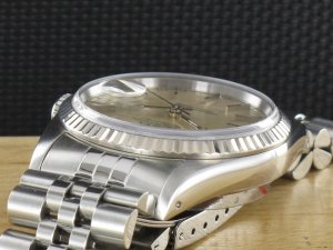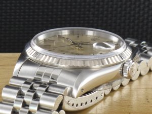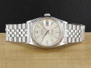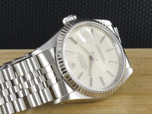 Original Rolex Datejust Ref. 16234 mit Zifferblatt in Silber und Weissgoldlünette aus dem Jahr 1994 mit Verkaufsdatum 09.11.1994. Die Uhr befindet sich im Orginalzustand. Das Gehäuse, Saphirglas und Jubiléband befinden sich in sehr gutem Zustand und weisen nahezu keine Gebrauchsspuren auf. Das Automatik Uhrwerk ist überholt, kontrolliert und läuft einwandfrei. Bei der Uhr handelt es sich um die Herrengrösse mit einem Durchmesser von 36 mm, welche auch gerne von Damen getragen wird. Die Lieferung erfolgt mit Box, original Zertifikat, Rechnung von Classic Watches und CW Garantiezertifikat.