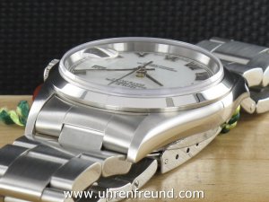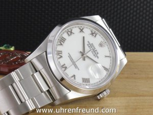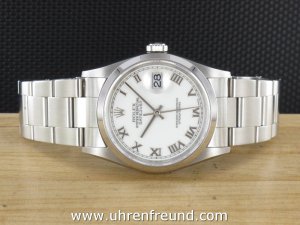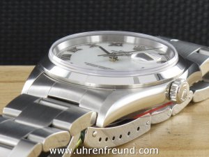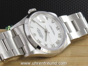 Rolex Datejust 36mm ref. 16200 aus 1997 mit Verkaufsdatum 08 - 1997. Die Uhr befindet sich im Orginalzustand. Das Gehäuse, Saphirglas und Oysterband befinden sich in sehr gutem Zustand und weisen nahezu keine Gebrauchsspuren auf. Das Automatik Uhrwerk ist überholt, kontrolliert und läuft einwandfrei. Bei der Uhr handelt es sich um die Herrengrösse mit einem Durchmesser von 36 mm, welche auch gerne von Damen gertagen wird. Die Lieferung erfolgt mit Box, Originalzertifikat, Rechnung von Classic Watches und CW Garantiezertifikat.