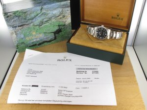 Original Rolex Explorer I Ref. 1016 aus dem Jahr 1987 mit Verkaufsdatum 20.05.1989. Das Gehäuse, Plexiglas und Oysterband befinden sich in sehr gutem Zustand und weisen nahezu keine Gebrauchsspuren auf. Das Automatik kontrolliert und läuft einwandfrei. Die Uhr war 2005 zum Rolexservice in Köln, hier wurden unter anderem Zeige und Zifferblatt auf SL getauscht. Seit dem Rolexservice wurde die Uhr nicht mehr getragen. Die Lieferung erfolgt incl. original Papieren, Box mit Umkarton, Booklets, Servicerechnung, CW Garantiezertifikat, und Rechnung von Classic Watches.