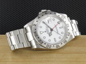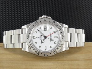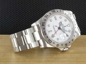 Original Rolex Explorer II Ref. 16570 mit weißem Zifferblatt aus dem Jahr 2001 mit Verkaufsdatum 23.06.2001. Das Gehäuse und Band befinden sich in sehr gutem Zustand und weisen nahezu keine Gebrauchsspuren auf. Das Uhrwerk ist überholt, kontrolliert und läuft einwandfrei. Die Lieferung erfolgt mit Original Box mit Umkarton, Originalzertifikat, Rechnung von Classic Watches und CW - Garantiezertifikat.
