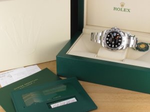Original Rolex Explorer II Ref. 216570 mit schwarzem Zifferblatt aus 2020 mit Verkaufsdatum 09.08.2020. Das Gehäuse und Band befinden sind in absolut neuwertigem Zustand. Die Uhr wurde nicht getragen und weist daher keine Gebrauchsspuren auf. Das Uhrwerk wurde kontrolliert und läuft einwandfrei. Die Lieferung erfolgt mit Box und Umkarton, Garantiekarte, Rechnung von Classic Watches sowie CW Garantiezertifikat. Die Uhr hat Rolex Werkgarantie bis 08 - 2025