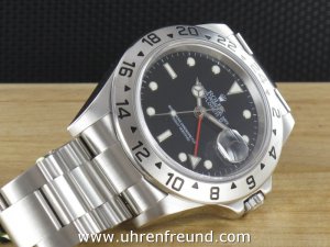 Original Rolex Explorer II Ref. 16570 mit schwarzem Zifferblatt aus dem Jahr 2005 mit Verkaufsdatum 23.11.2005. Das Gehäuse und Band befinden sich in sehr gutem Zustand und weisen nahezu keine Gebrauchsspuren auf. Die Uhr kann als neuwertig bezeichnet werden. Das Uhrwerk ist überholt, kontrolliert und läuft einwandfrei. Die Lieferung erfolgt mit Original Box, Originalzertifikat, Rechnung von Classic Watches und CW - Garantiezertifikat.