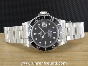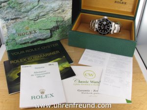 Rolex Submariner Date Ref. 16610 aus 2003 mit Verkaufsdatum 24.08.2004. Das Gehäuse und Band befinden sich in sehr gutem Zustand und weisen nahezu keine Gebrauchsspuren auf. Die Uhr kann als neuwertig bezeichnet werden. Das Uhrwerk ist überholt, kontrolliert und läuft einwandfrei. Die Lieferung erfolgt incl. Box mit Umkarton, Originalzertifikat, Anleitungen, Rechnung von Classic Watches sowie CW - Garantiezertifikat.