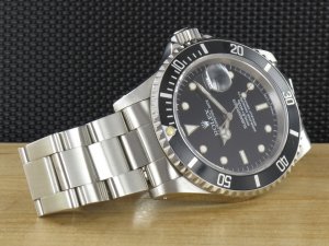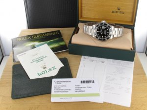 Rolex Submariner Date Ref. 16610 aus dem Jahr 1995. Das Gehäuse und Band befinden sich in sehr gutem Zustand und weisen nahezu keine Gebrauchsspuren auf. Zifferblatt, Zeiger und Lünettenperle sind original Tritium und leuchten daher nicht mehr. Das Uhrwerk ist überholt, kontrolliert und läuft einwandfrei. Die Lieferung erfolgt incl. Box mit Umkarton, Originalzertifikat, Rechnung von Classic Watches sowie CW - Garantiezertifikat.