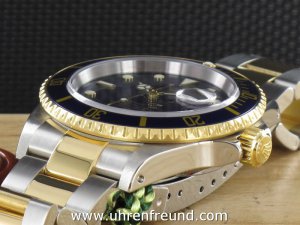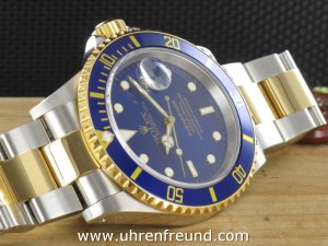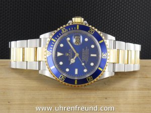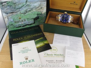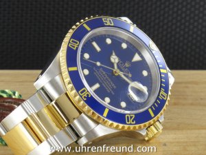 Rolex Submariner Date Ref. 16613 Stahl/Gold aus dem Jahr 2002 mit Verkaufsdatum 10 - 2002. Das Gehäuse und Band befinden sich in sehr gutem Zustand und weisen nahezu keine Gebrauchsspuren auf. Die Uhr kann als neuwertig bezeichnet werden. Das Uhrwerk ist überholt, kontrolliert und läuft einwandfrei. Die Lieferung erfolgt mit Box und Umkarton Originalzertifikat, Anleitung, Rechnung von Classic Watches CW - Garantiezertifikat.