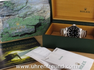 Rolex Submariner Ref. 14060M F-serie verkaufdatum 05-2005. Das Gehäuse und Band befinden sich in sehr gutem Zustand und weisen keine Gebrauchsspuren auf. Die Uhr kann als neuwertig bezeichnet werden. Das Uhrwerk läuft einwandfrei. Die Lieferung erfolgt mit Box Umkarton Originalzertifikat anleitungen Rechnung von Classic Watches und CW Garantiezertifikat. Aktueller Listenpreis = 4940,- Euro