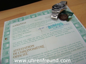 Rolex Submariner 1680, Papiere