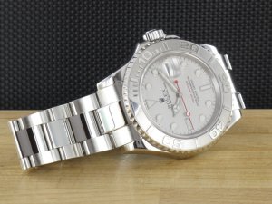 Rolex Yacht-Master 40mm Ref. 16622 aus 2004 mit Verkaufsdatum 26.11.2004. Das Zifferblatt und Lünetteninlay bestehen aus Platin. Das Gehäuse und Band befinden sich in sehr gutem Zustand und weisen nahezu keine Gebrauchsspuren auf. Die Uhr könnte als neuwertig bezeichnet werden. Das Uhrwerk ist überholt, kontrolliert und läuft einwandfrei. Die Lieferung erfolgt incl. Box mit Umkarton, Originalzertifikat, Rechnung von Classic Watches sowie CW Garantiezertifikat.