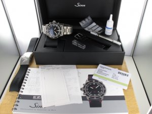 Sinn EZM 1.1 Ref. 506.010 aus 2020 mit Verkaufsdatum 02.04.2020 mit SINN Uhrwerk SZ01. Das Uhrwerk ist kontrolliert und läuft einwandfrei. Das Gehäuse und Band weisen keine Gebrauchsspuren auf. Die Uhr kann als absolut neuwertig bezeichnet werden. Die Lieferung erfolgt mit zusätzlichem Leder- und Silikonband, Box und Umkarton, Anleitung, Kaufrechnung und Rechnung von Classic Watches.