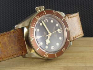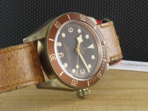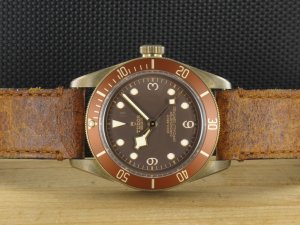 Tudor Black Bay Bronze Ref. 79250BM mit braunem Zifferblatt aus 2019. Das Gehäuse und Band befinden sich in sehr gutem Zustand und weisen nahezu keine Gebrauchsspuren auf. Das Uhrwerk wurde, kontrolliert und läuft einwandfrei. Die Lieferung erfolgt mit Box und Umkarton, Garantiekarte, Rechnung von Classic Watches sowie CW Garantiezertifikat.