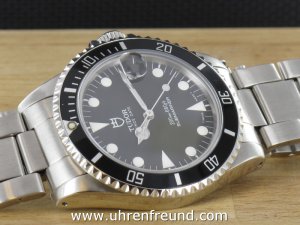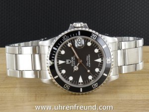 Original Tudor Submariner Ref. 75190 mit schwarzem Zifferblatt und Saphirglas aus dem Jahr 1995. Der Durchmesser der Uhr ist 36 mm, es handelt sich um das Medium Modell, welches auch gerne von Damen getragen wird. Das Uhrwerk ist überholt, kontrolliert und läuft einwandfrei. Das Rolexgehäuse befindet sich in sehr gutem Zustand und weist nahezu keine Gebrauchsspuren auf. An der Uhr befindet sich ein Tudor-Faltband. Bei dieser Uhr handelt es sich um eine seltene Ausführung, da diese Referenz nur sehr kurz produziert wurde. Die Lieferung erfolgt mit Serviceetui, Rechnung von Classic Watches und CW - Garantiezertifikat.